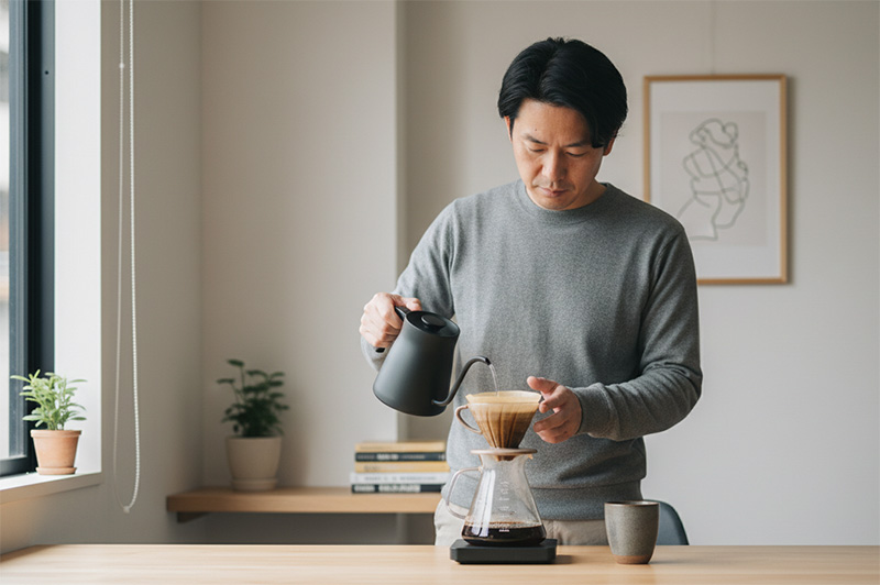 休日はちゃんとドリップセットを出して、ゆっくり丁寧に淹れる。