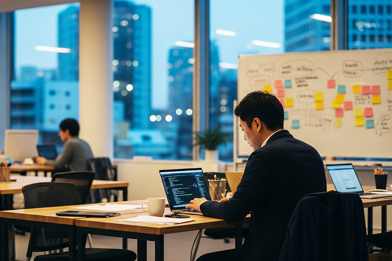 起業当初は、アプリケーション開発やWeb事業、システム開発などを外注で回しながら、東芝の開発担当だった妻を中心に、さまざまな仕組みを作ってきました。
