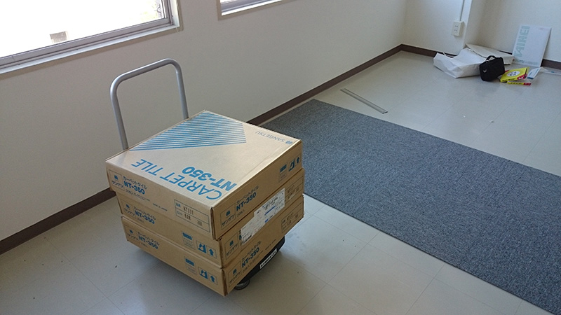 自分たちでオフィスマット買い、それを敷き、パーテーションは近所のリサイクルショップで格安購入。